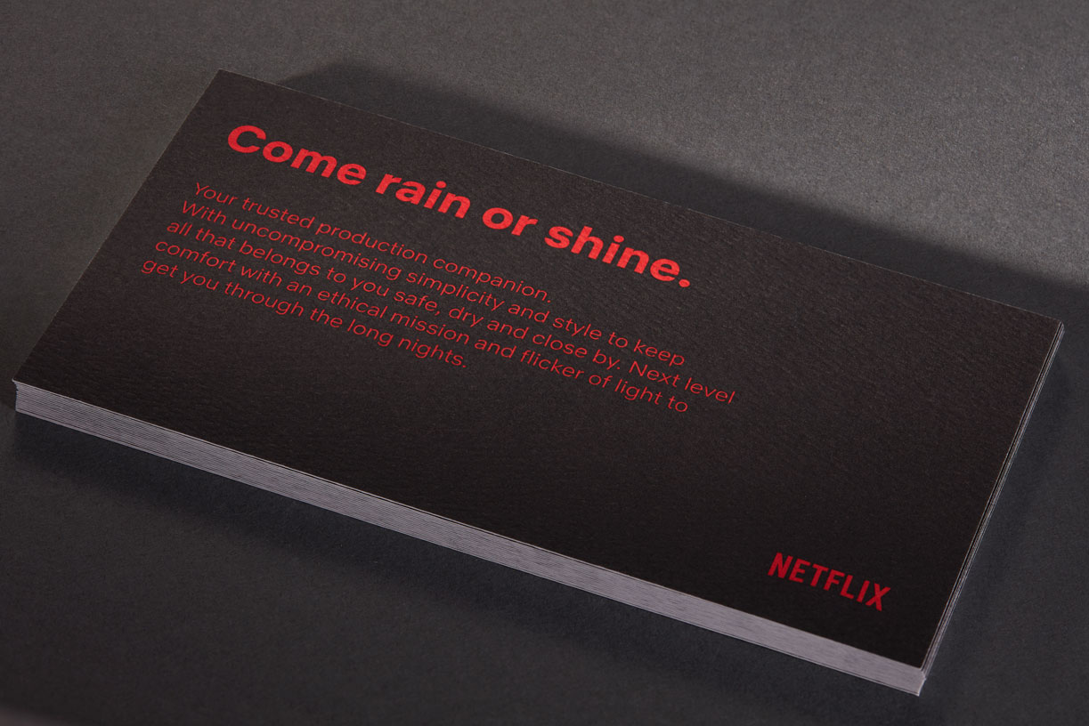 Netflix commissioned eco-friendly packaging for Bafta attendees to enjoy at home amid Covid-19. With a focus on sustainability, all materials were sourced from recycled and eco-friendly sources. The project entailed crafting a bespoke box in collaboration with renowned brands like Pangaia, Rains, and August & Piers, ensuring a premium yet personalised Netflix experience.