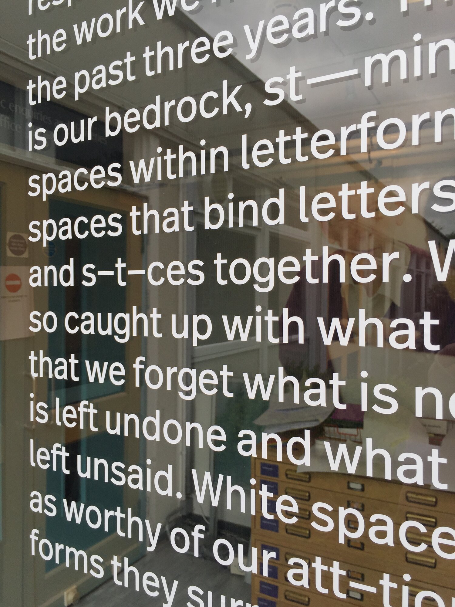 Invitation: In the early stages, we focused on the invite's format. We opted for white as a spot colour on dark paper stock, with yellow as an accent, reminiscent of the building's yellow doors. Utilising the white toner on the Ricoh 5-colour digital press allowed us to incorporate 'white space' into the design, a central concept. Each invite was personalised using InDesign's Data Merge function, and around 930 invites were mailed out.